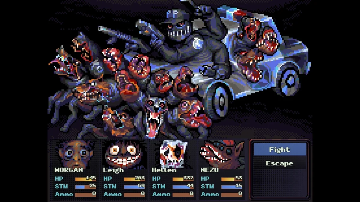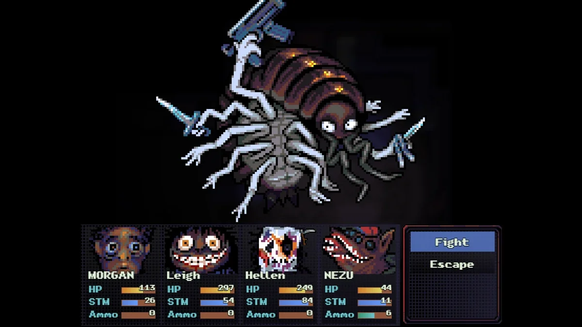 Look Outside looks terrifyingly gorgeous with its incredible pixel art and more monster designs that I could ever imagine. The sheer amount of artwork is staggering. When you start a fight, there's the creature's artwork in the distance, then another one up close, then they might split open to reveal their true form (in this phase at least); there are additional limbs and heads and weapons in all kinds of places. The creatures are not animated, but I think it only increases the impact. Together with unique sets of skills personalized to their particular mutations, every battle you fight is its own terrifying experience. You can get amazing variety in your nightmares after playing this game, and I'll leave it up to you to decide if it's a selling point or not.
